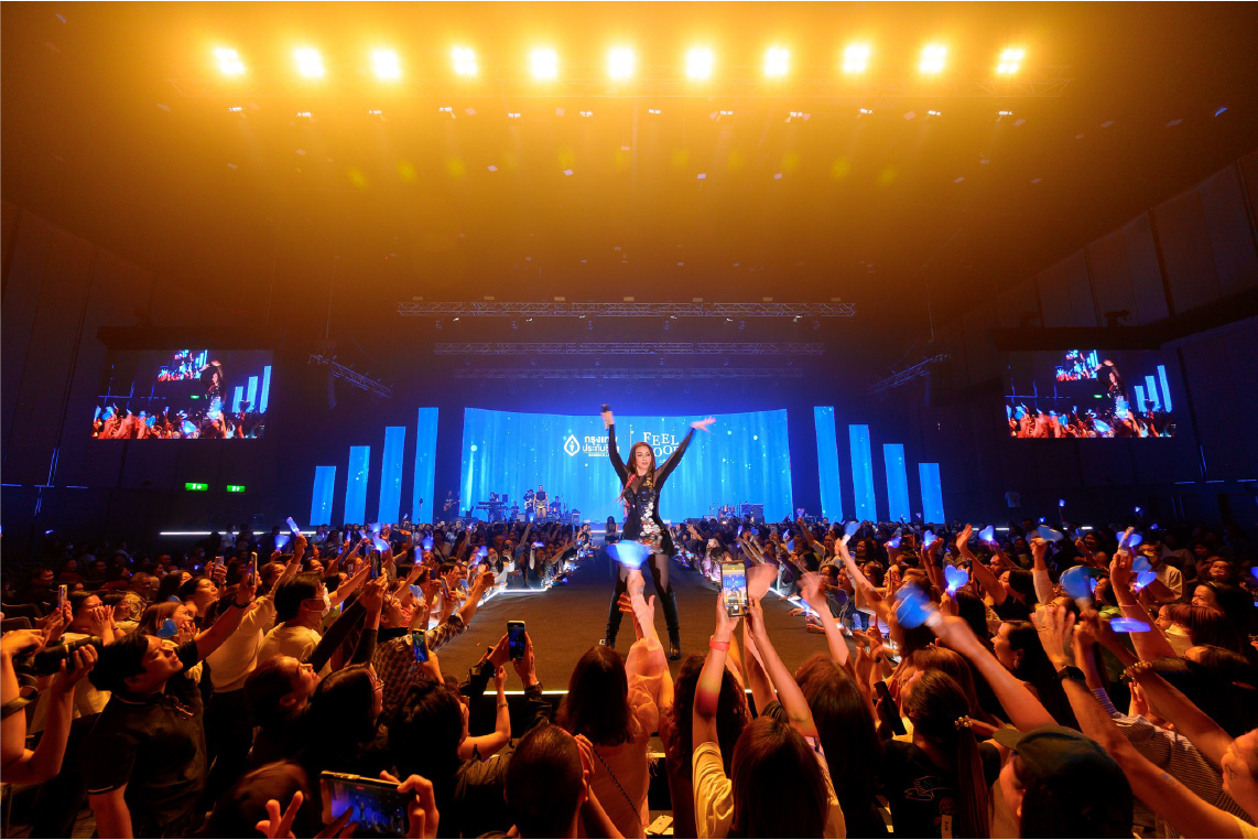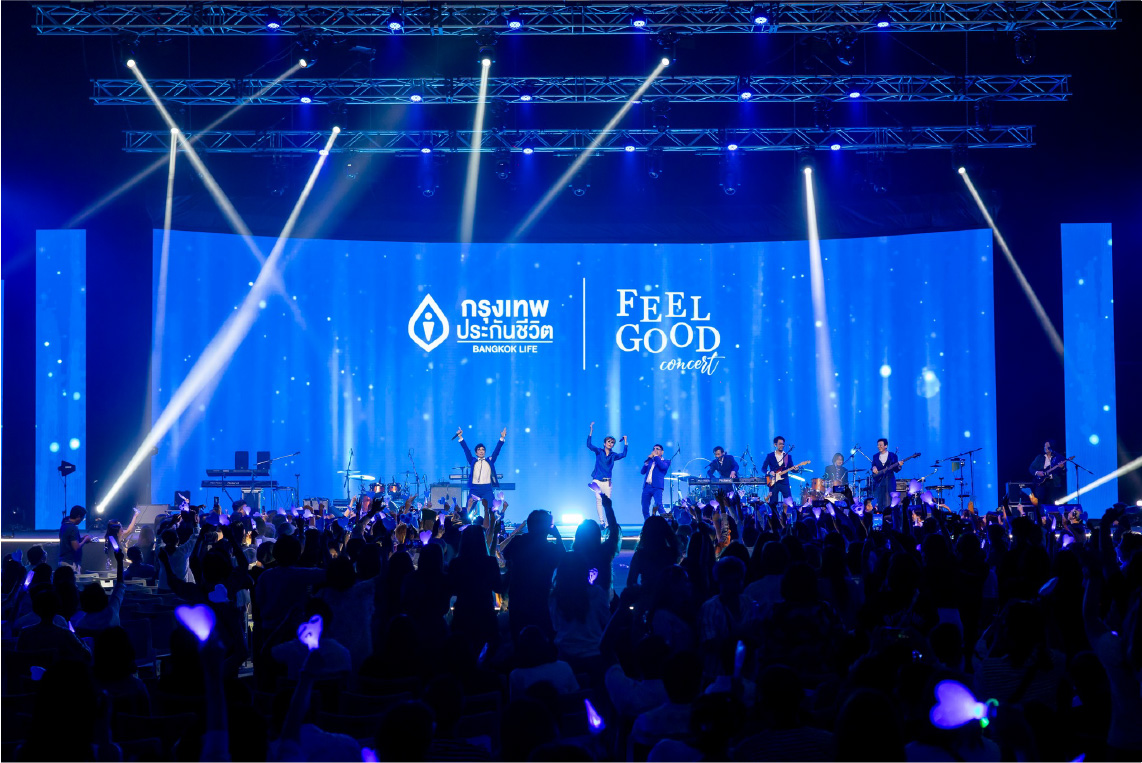 กรุงเทพประกันชีวิต ฉลองวาระครบรอบ 73 ปี ใส่ใจ สร้างสรรค์ จัดกิจกรรม BLA Feel Good Concert ยกทัพศิลปินใหญ่สุดเก๋า “เดอะ พาเลซ, นูโว และ คริสติน่า อากีลาร์” ส่งมอบความสุขพร้อมประสบการณ์สุดพิเศษเพื่อลูกค้าคนสำคัญ ตอกย้ำจุดยืน The Most Caring Insurance Brand โดยมีนายโชน โสภณพนิช กรรมการผู้จัดการใหญ่และประธานเจ้าหน้าที่บริหาร (กลาง) พร้อมด้วยผู้บริหารระดับสูง และแขกผู้มีเกียรติร่วมงานกว่า 3,000 คน ณ ห้องภิรัช ฮอลล์ ไบเทค บางนา เมื่อเร็ว ๆ นี้