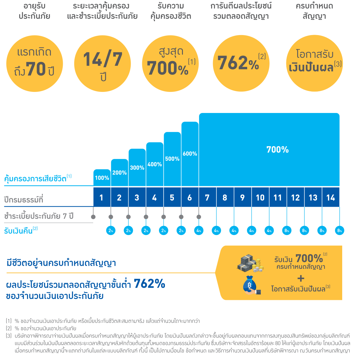 | เงินปันผลของบริษัท[3] | ในปีกรมธรรม์ที่ 7-14 รับ 700% |