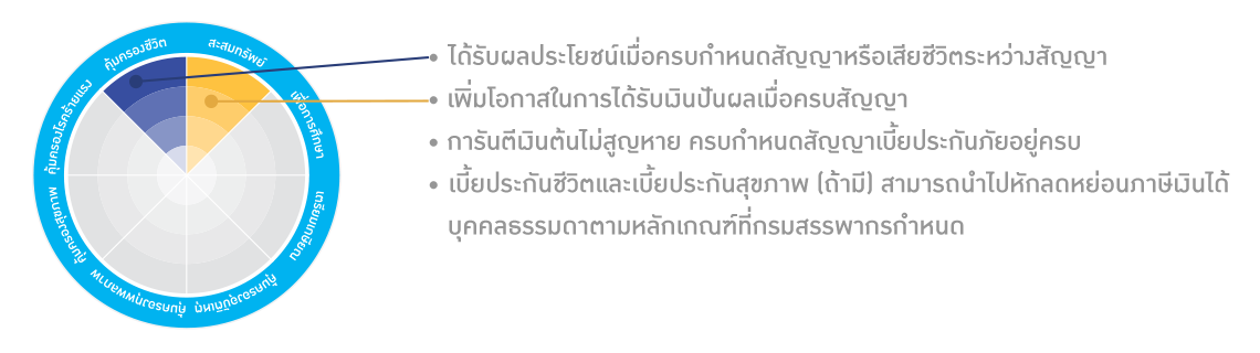 - วางแผนลดหย่อนภาษี สามารถนำเบี้ยประกันชีวิตไปช่วยลดหย่อนภาษี