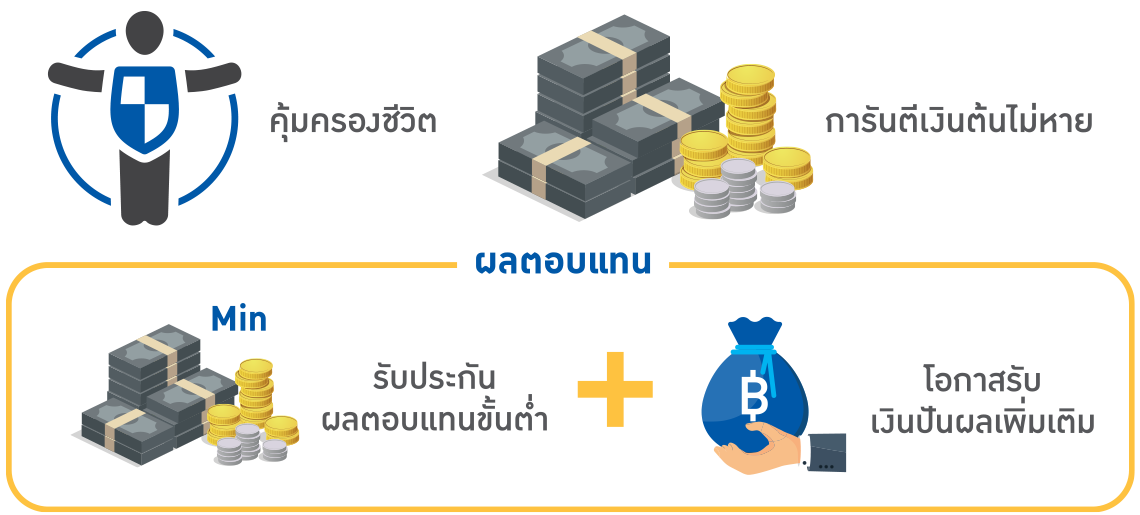 กลุ่มผลิตภัณฑ์แบบมีเงินปันผล ทำให้มีความยืดหยุ่นในการลงทุน เพื่อมีโอกาสรับผลตอบแทนที่สูงขึ้น ในขณะที่ยังได้รับการการันตี ผลตอบแทนขั้นต่ำ