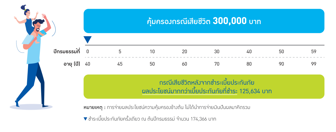 | ปีกรมธรรม์ที่ | เบี้ยประกันชีวิต (ชำระเบี้ยครั้งเดียว) |