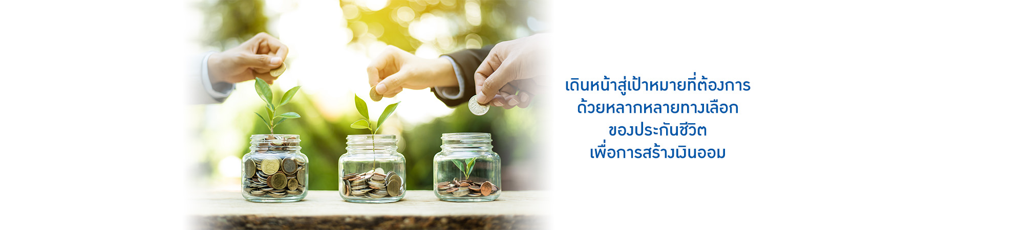 มั่นใจกับความคุ้มครองและผลตอบแทนที่มั่นคง ด้วยหลากหลายทางเลือกของประกันชีวิตเพื่อการสร้างเงินออม พร้อมให้คุณเดินหน้าสู่เป้าหมายที่ต้องการตามไลฟ์สไตล์ในแบบคุณ