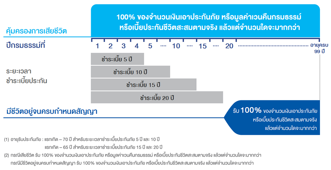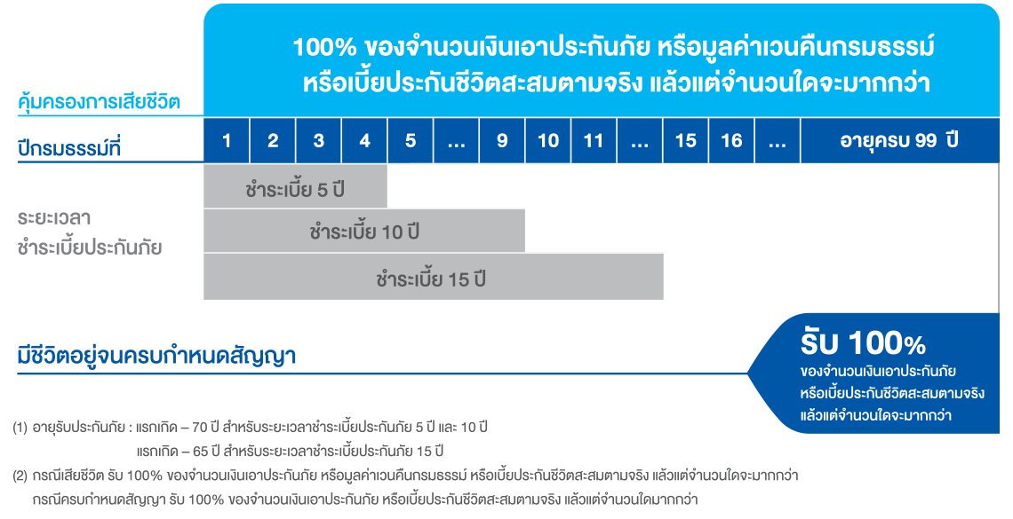 | ระยะเวลาเอาประกันภัย | ถึงอายุครบ 99 ปี | ||
