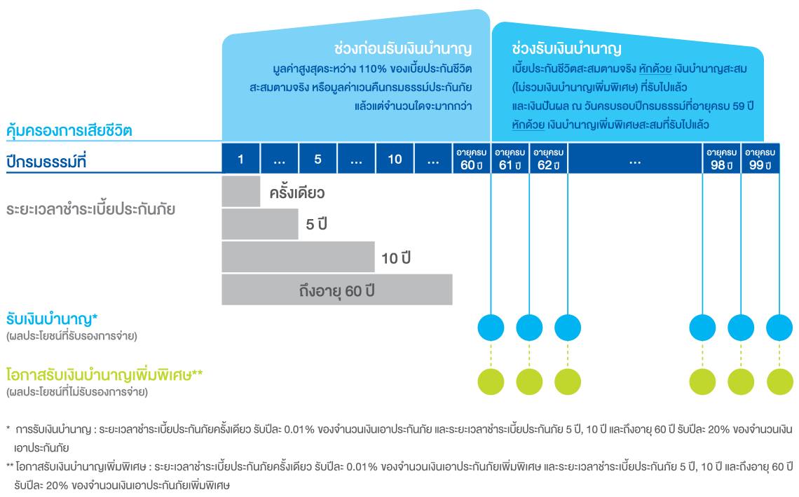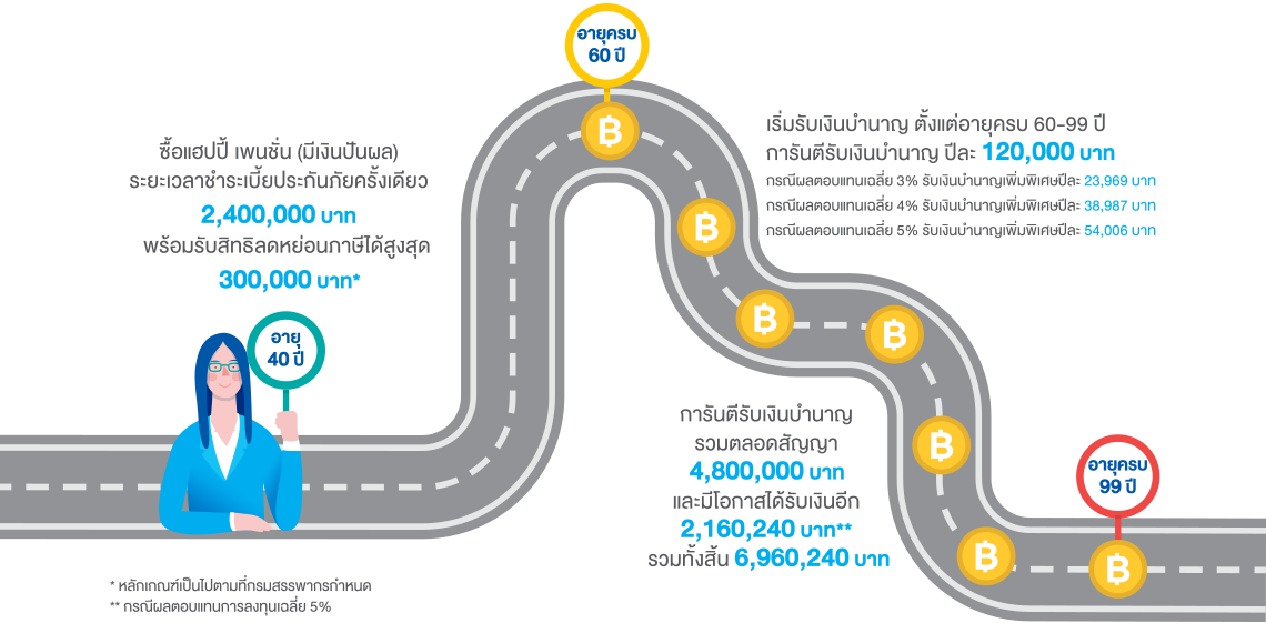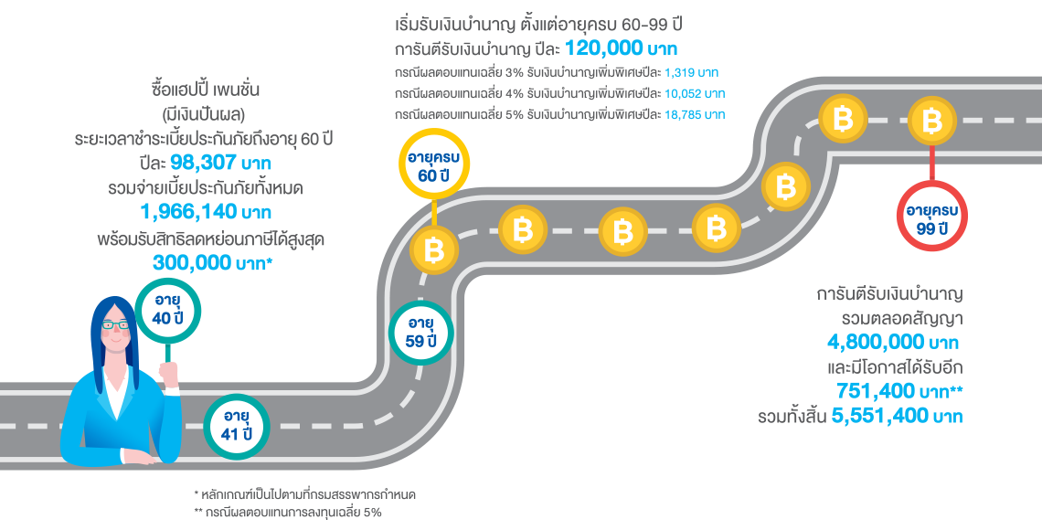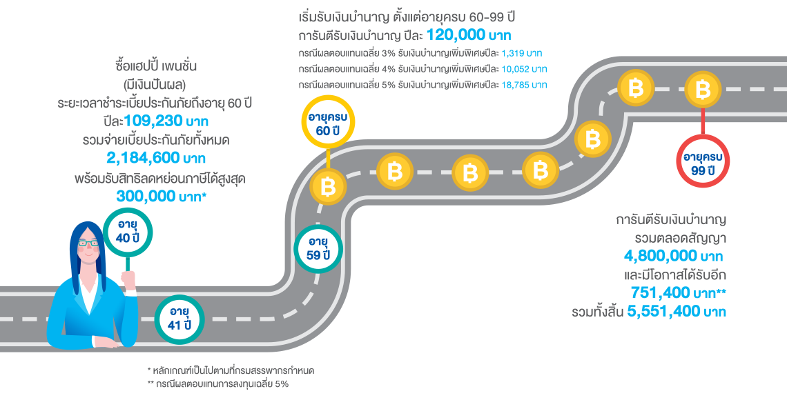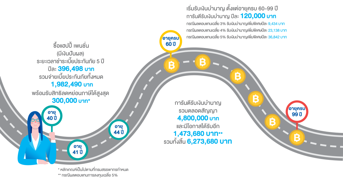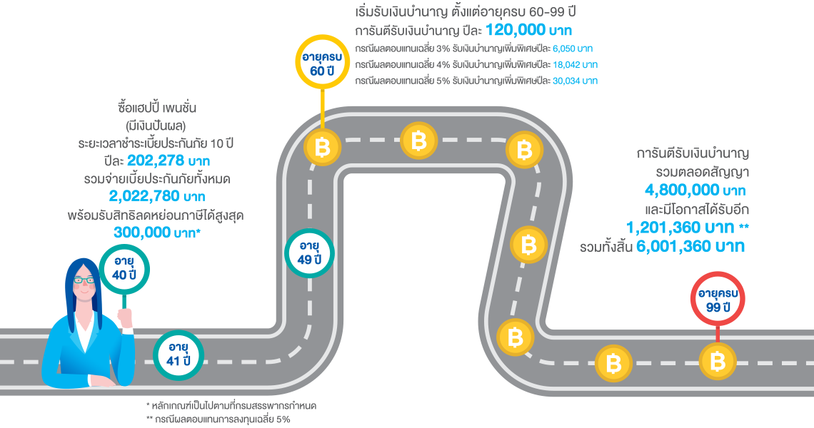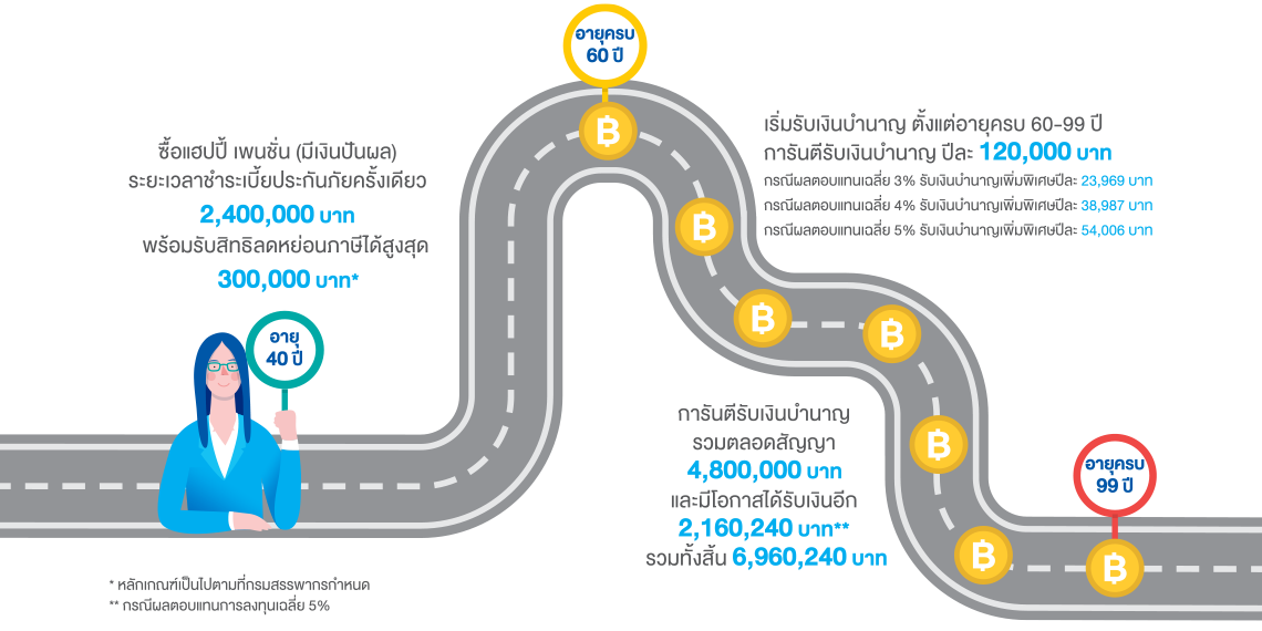 * บริษัทมีนโยบายลงทุนในสินทรัพย์ที่มีความเสี่ยงสูงสำหรับแบบประกันชนิดมีเงินปันผล ในสัดส่วนที่สูงกว่าแบบประกันทั่วไป โดยสินทรัพย์ที่มีความเสี่ยงสูง ได้แก่ หุ้นสามัญ และกองทุนรวมอสังหาริมทรัพย์ ทั้งในประเทศและต่างประเทศ ที่รวมธุรกิจที่มีแนวโน้มอัตราการเติบโตสูงในระยะยาว เช่น กลุ่มเทคโนโลยี และสุขภาพ เพื่อเพิ่มโอกาสในการได้รับผลตอบแทนที่สูงขึ้น