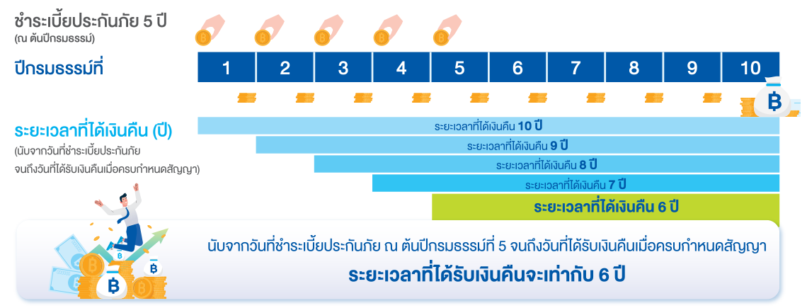 ผลประโยชน์เงินคืน ณ วันครบรอบปีกรมธรรม์ |