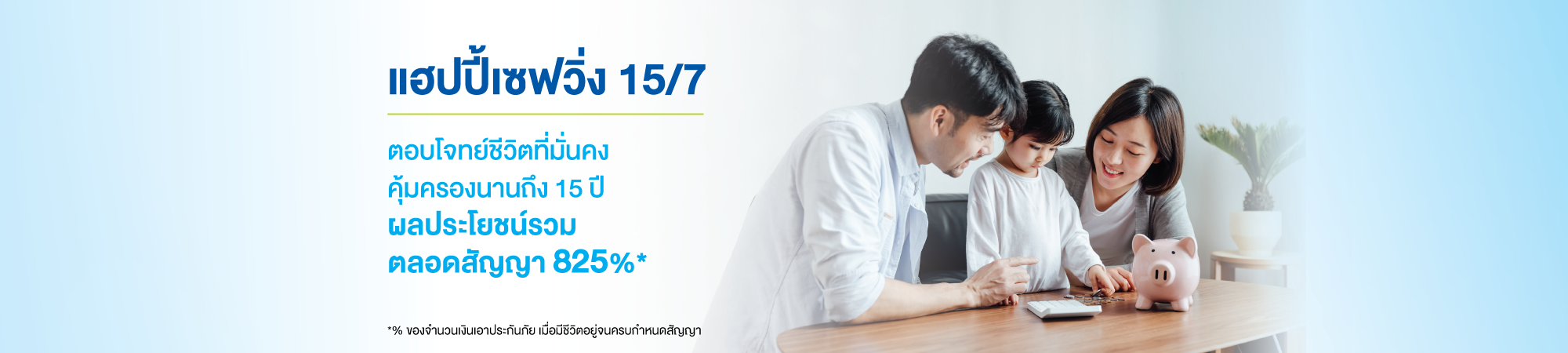 - เงินครบกำหนดสัญญา ณ วันครบรอบปีกรมธรรม์ที่ 15