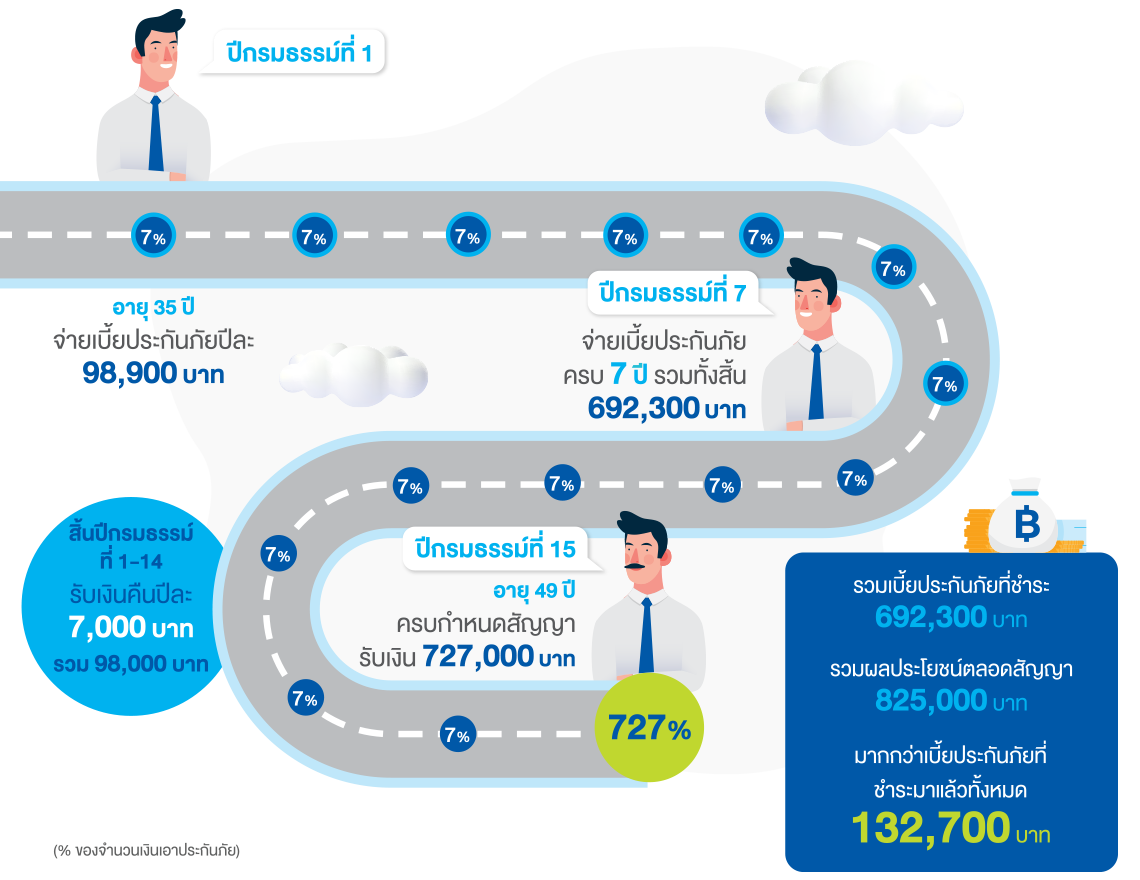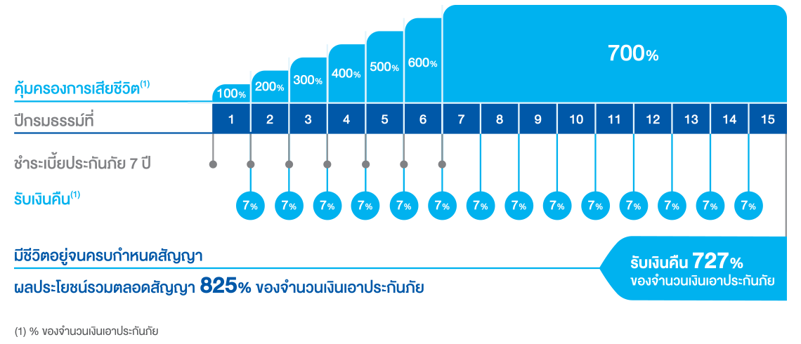 - เบี้ยประกันชีวิตรวม 7 ปี