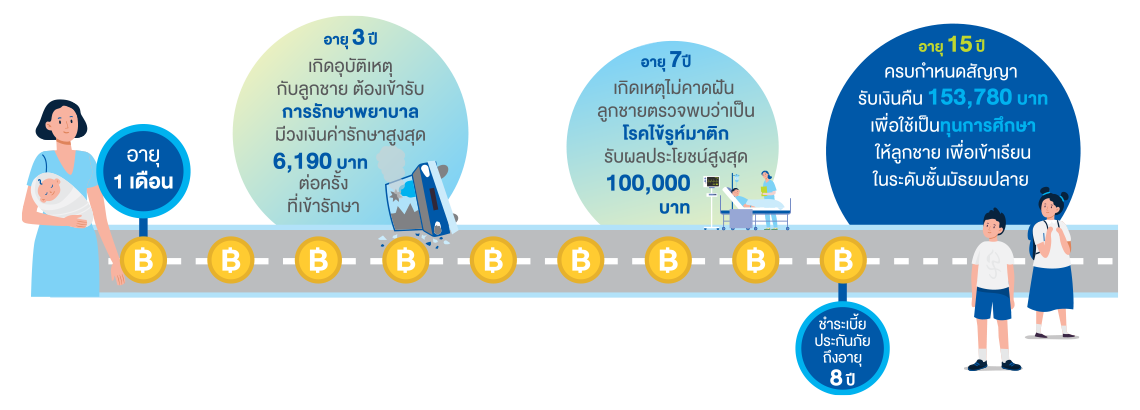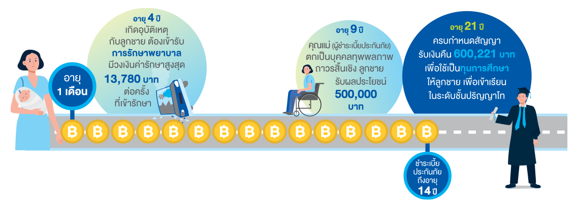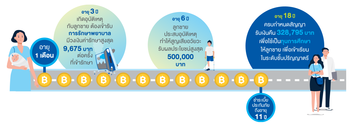 - สื่อโฆษณาฉบับนี้เป็นเพียงการสรุปผลประโยชน์เบื้องต้นเท่านั้น โปรดทำความเข้าใจในรายละเอียดเงื่อนไข ความคุ้มครองและข้อยกเว้น ก่อนการตัดสินใจทำประกันภัย ทั้งนี้ เงื่อนไขความคุ้มครองและข้อยกเว้นอย่างสมบูรณ์ สามารถสอบถามได้จากตัวแทนของท่าน หรือสามารถศึกษารายละเอียดได้จากกรมธรรม์ประกันชีวิตของท่าน