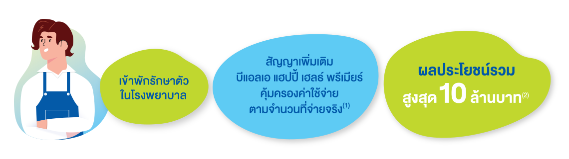 - สัญญาเพิ่มเติมบีแอลเอ แฮปปี้ เฮลธ์ พรีเมียร์ : อายุรับประกันภัย ตั้งแต่ 11 - 80 ปีี