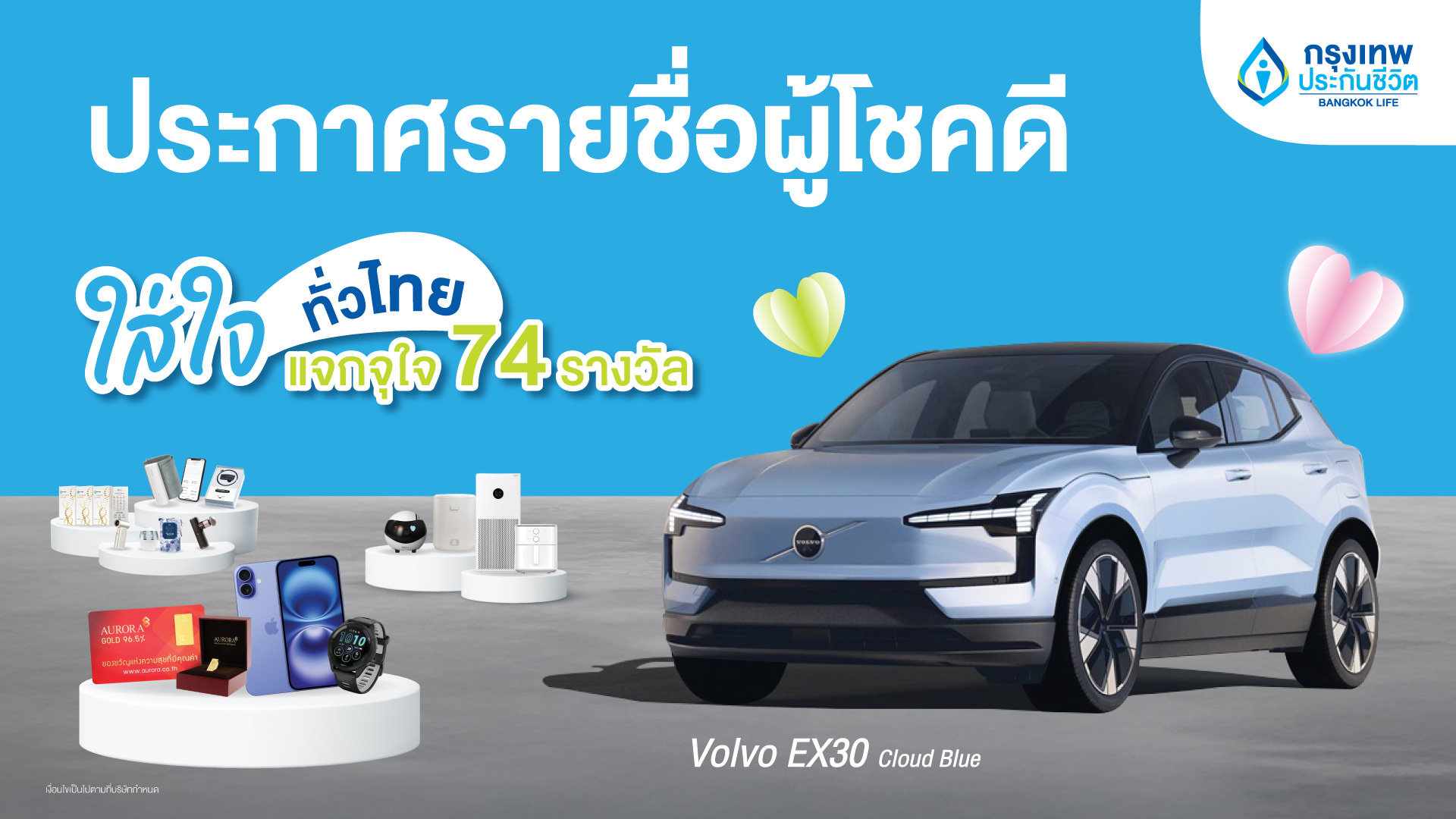 กรุงเทพประกันชีวิต ขอขอบพระคุณลูกค้าที่ให้ความไว้วางใจ สมัครทำประกันชีวิตกับบริษัท ในช่วงระยะเวลาโครงการใส่ใจทั่วไทย แจกจุใจ 74 รางวัล มูลค่ารวมกว่า 2 ล้านบาท ระหว่างวันที่ 1 มิถุนายน 2568 ถึง วันที่ 31 ธันวาคม 2568 ที่ผ่านมา และขอแสดงความยินดีกับผู้โชคดี จำนวน 74 ท่าน สามารถตรวจสอบรายชื่อผู้โชคดีได้ตามด้านล่างนี้